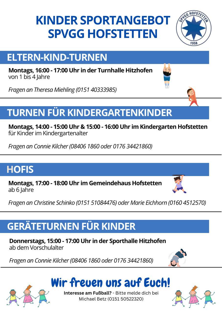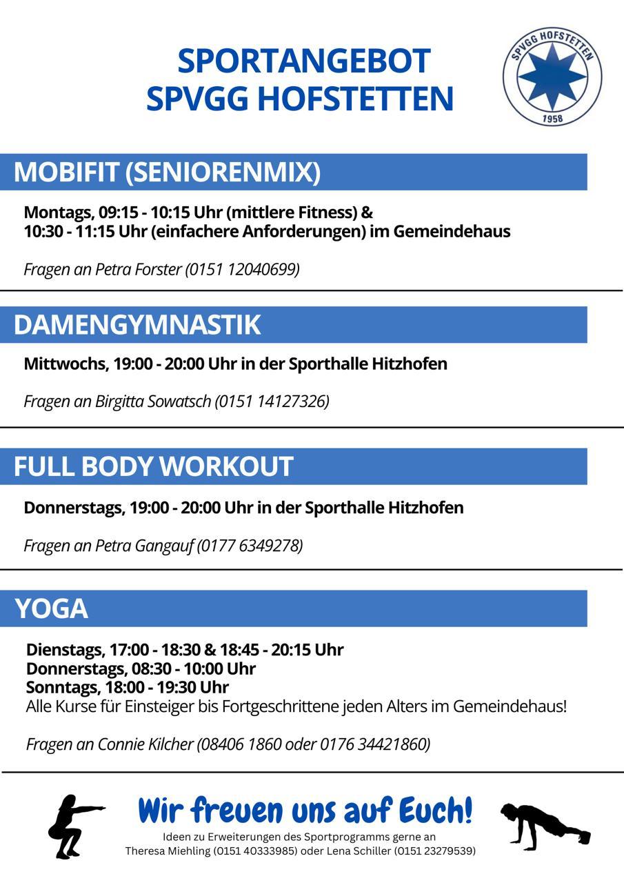 An alle Sportbegeisterten! Die Sommerpause ist vorbei, ab dem 16.09.2025 gehts wieder los, die Gymnastikabteilung des SpVgg Hofstetten bietet zahlreiche Kurse an...